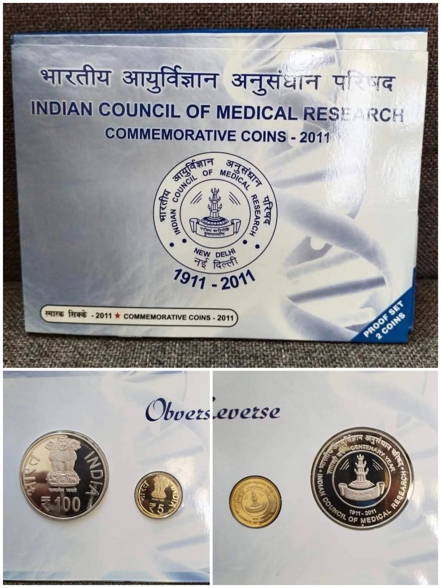 2011 INDIAN COUNCIL OF MEDICAL RESEARCH COMMEMORATIVE COINS PROOF SET TOP GRADE CONDITION