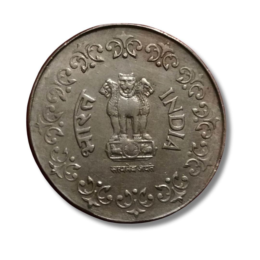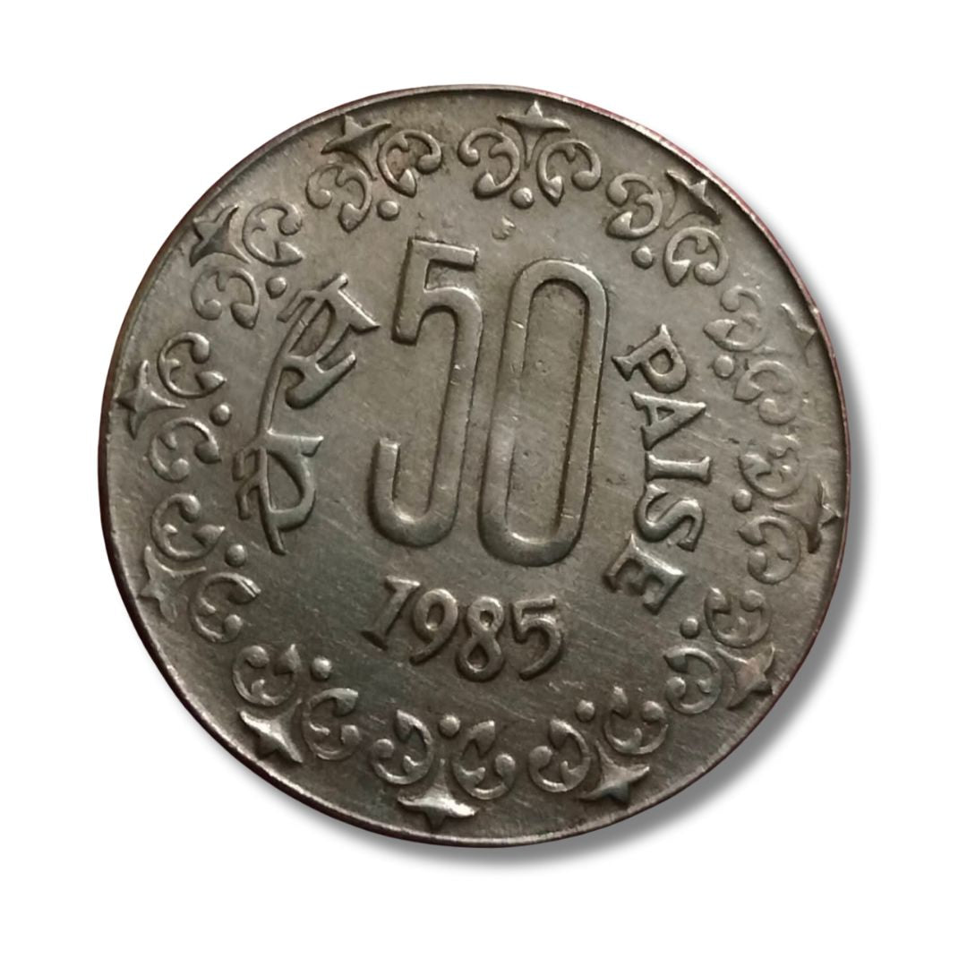 This 1985 50 Paise coin, minted in Kolkata, is part of India's post-independence decimal coinage. Made of nickel, it features the national emblem and denomination in bold design. Ideal for both novice and seasoned collectors.