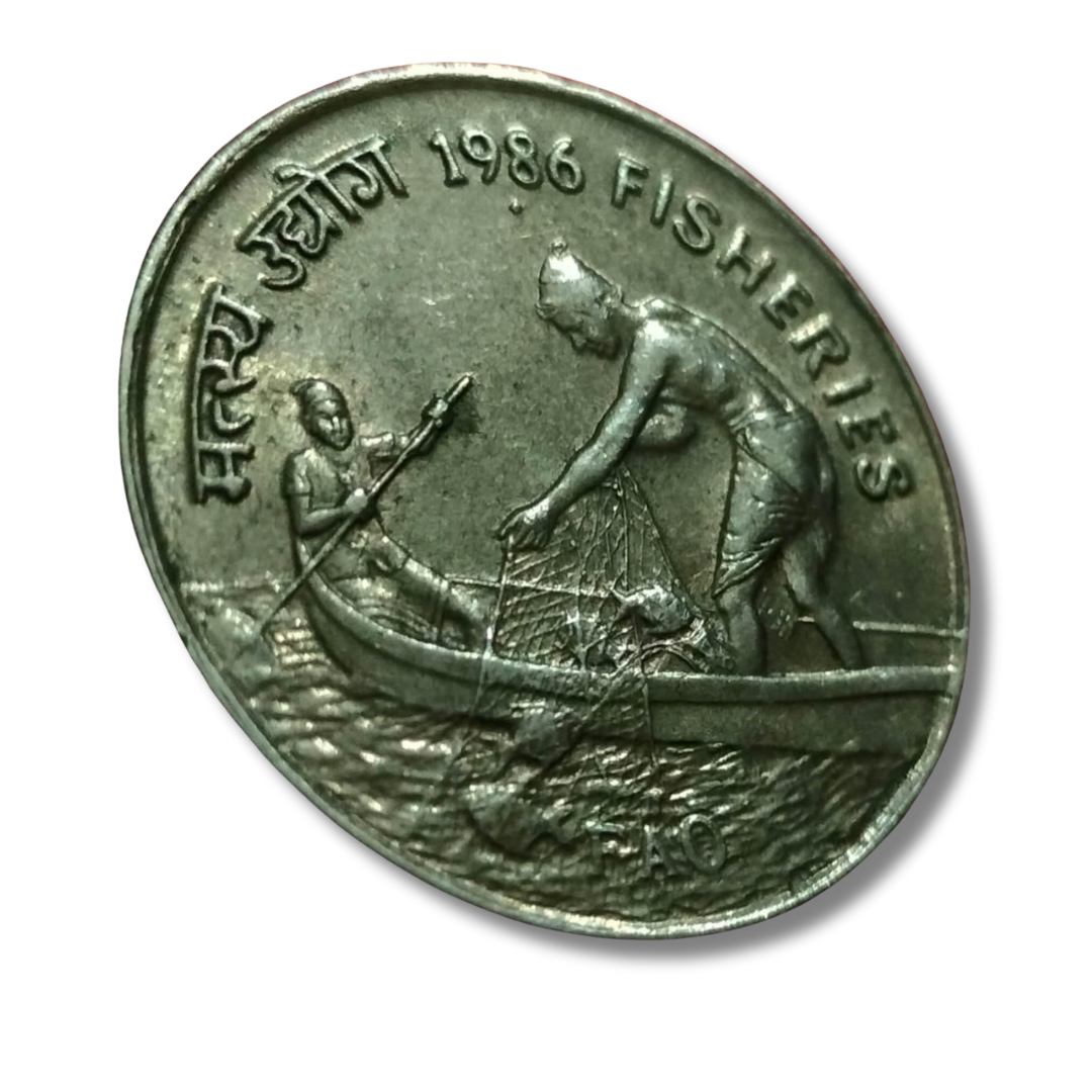 Issued in 1986, this 50 Paise Fisheries coin was released to highlight the importance of the fisheries sector in India’s economy and to honor the hardworking fishing communities. It’s a part of the thematic coin series of India during the 1980s.