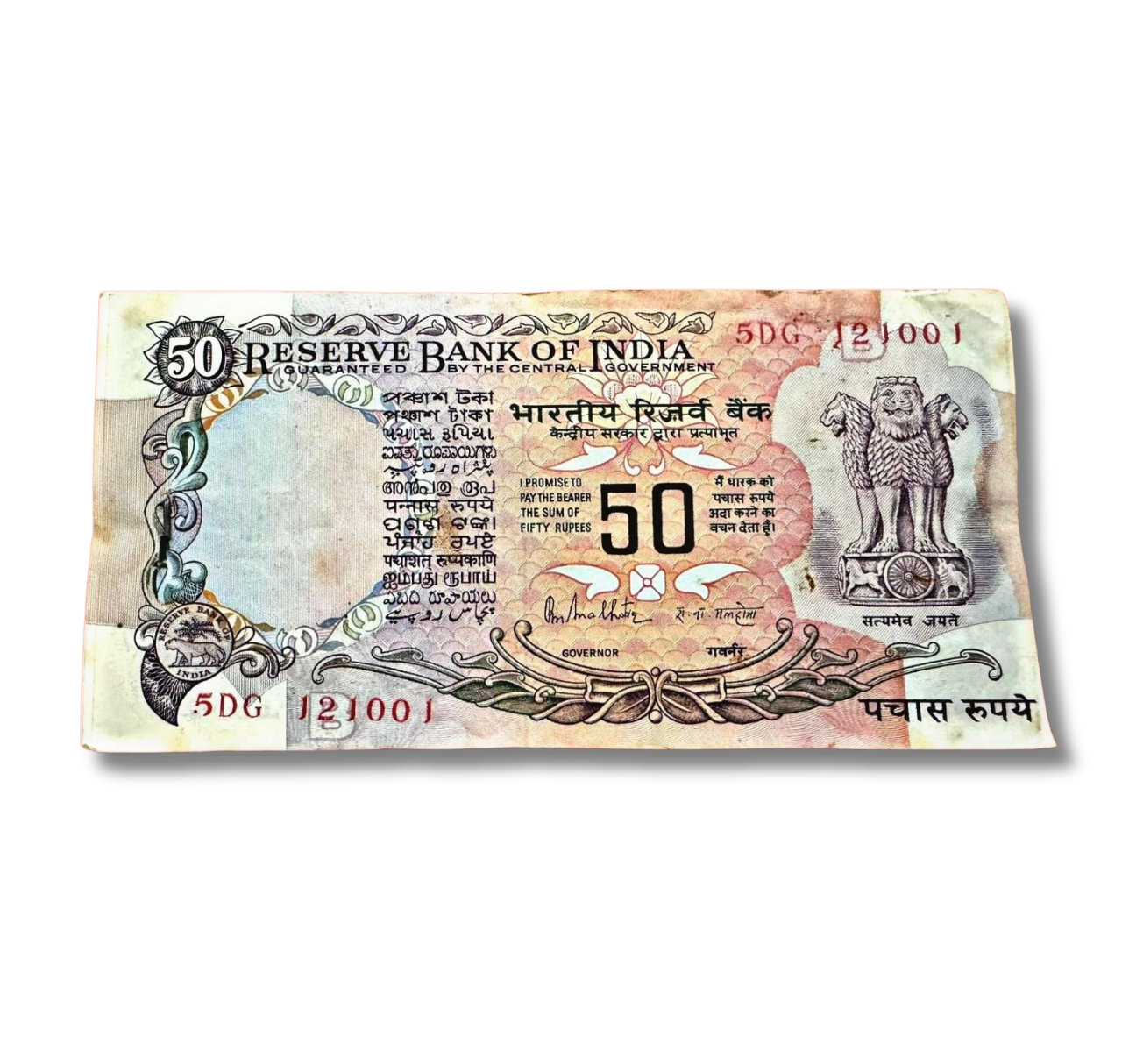 ₹50 Rare Birthday Note Packet – Prefix 5DG | Serial 121001 | Governor R. N. Malhotra | Parliament Back