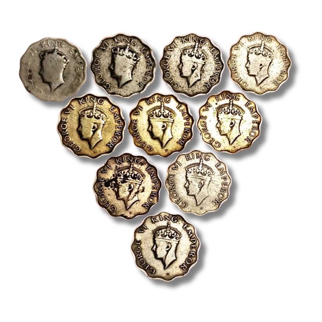 A true collector’s gem! This complete 10-coin set of George VI – 1 Anna coins features coins from all key years, including several rare and hard-to-find dates. Struck during the reign of King George VI (1936–1952), these coins represent a golden era of British India numismatics.