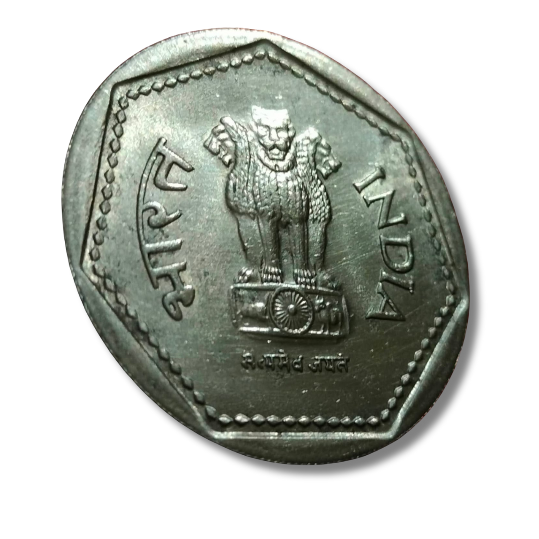 This 1984 One Rupee coin, minted at the Hyderabad Mint, is part of the standard issue coins during the Republic India period. A classic Copper-Nickel issue, it is a must-have for collectors of mid-80s Indian currency.