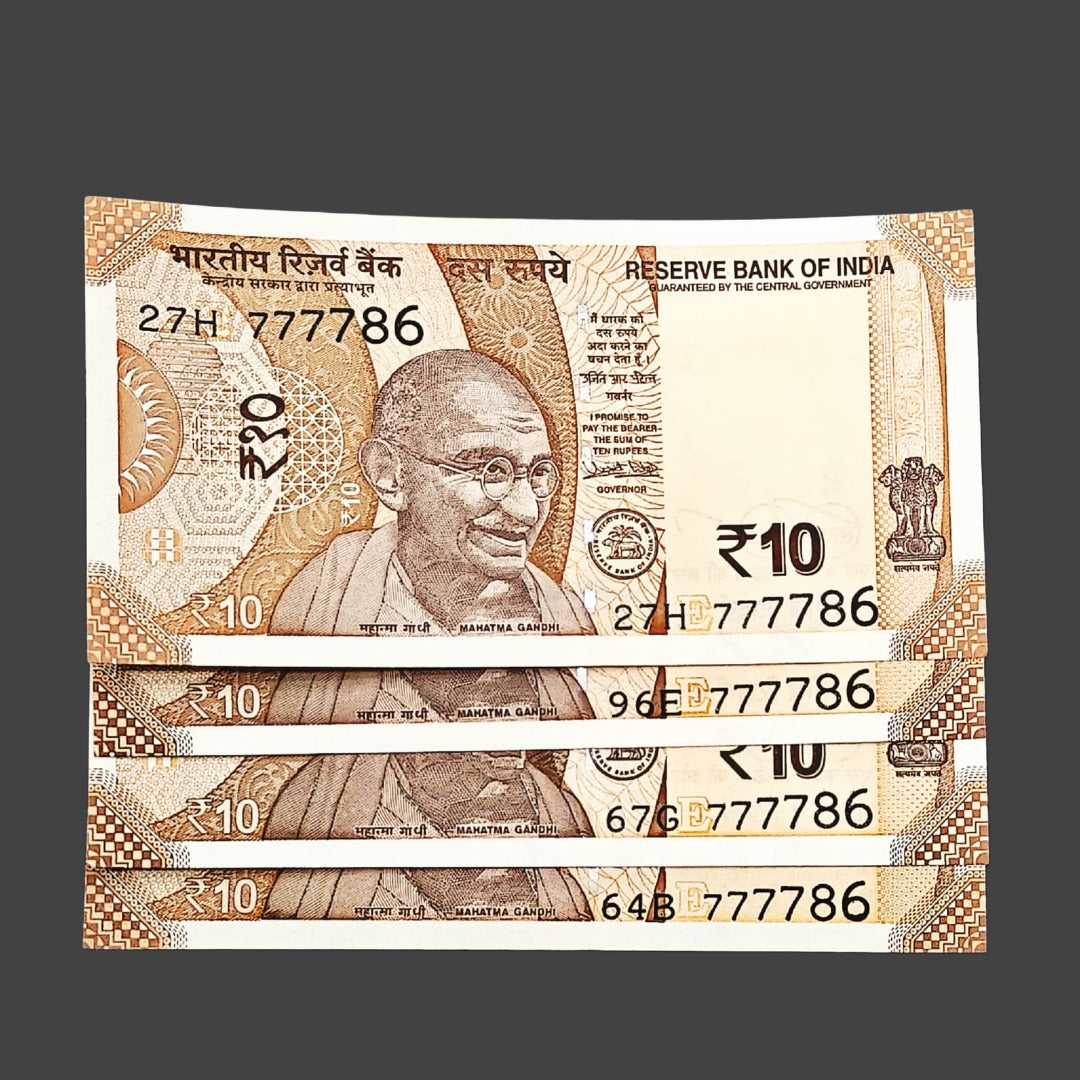 Rs 10 starting four times 7 plus ending 786 holy bismillah number each note 600 governor urjit patel rare collectible