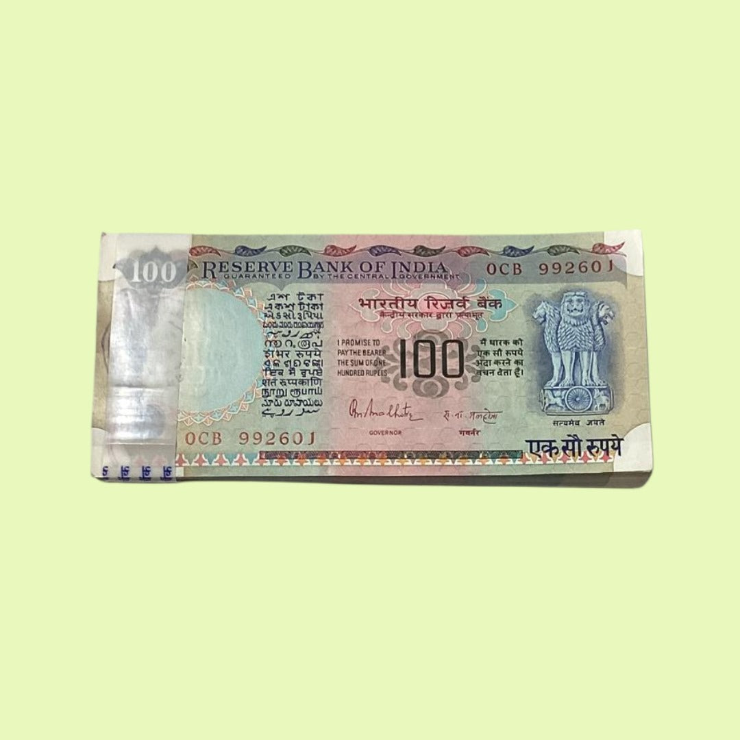 Rs 100 Note Old Issue Packet Serial 992601 Pink Beauty 687 reverse Holy Bismillah | Signed by R N Malhotra | Rare Collectible Item